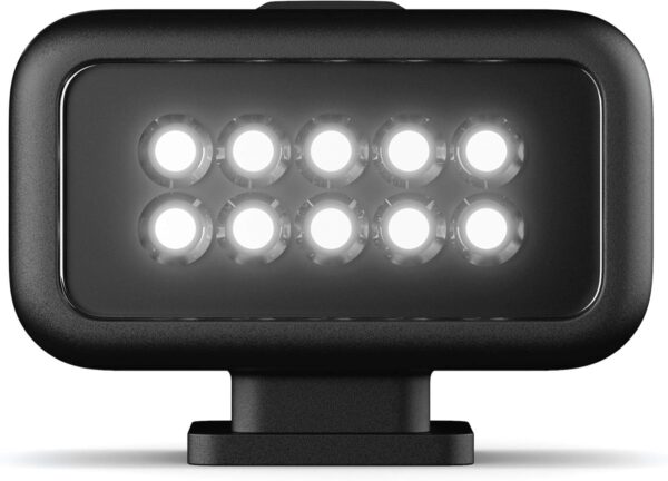 GoPro Light Mod : Cet éclairage LED compact délivre 200 lumens avec différents niveaux d’intensité et des diffuseurs interchangeables. La version 2025 est 30% plus lumineuse et propose désormais une température de couleur ajustable de 3200K à 5600K pour s’adapter à toutes les conditions d’éclairage.